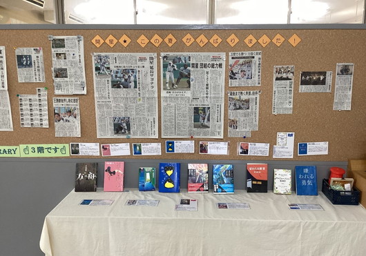 本校舎1Fオープンスペースには、この夏、活躍したいろいろな部活動や同好会について紹介された新聞記事も掲示しています(*^-^*)