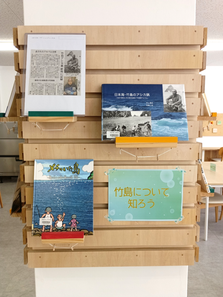 20日に「竹島カレー」が販売されるのに合わせて、今年も学食に竹島の本を展示しました。