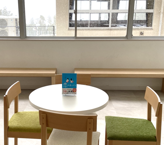 雪を眺めながら読書ができるラウンジです