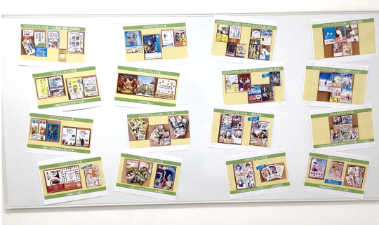 奥にあるホワイトボードには、みなさんのリクエストで購入した本が紹介してあります