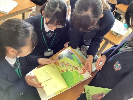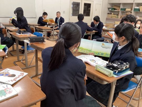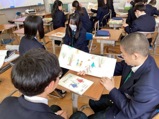 1年生は、技術家庭科の授業で子どもの発達について学びました。その一環として、発達段階に合わせた絵本の選び方や読み聞かせの実習を行いました。