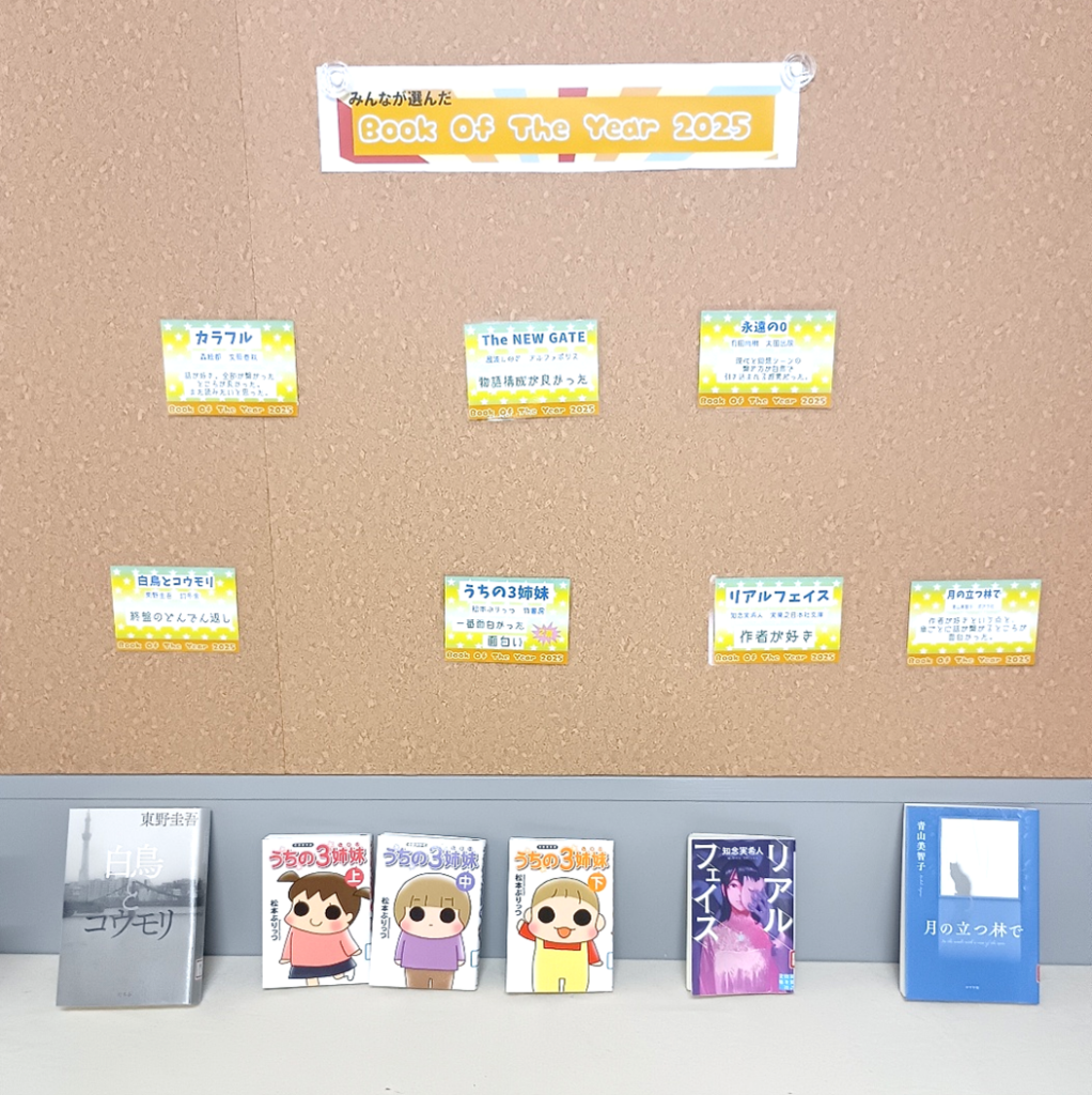 開星のみんなが選んだ、今年いちばん面白かった本「BOOK OF THE YEAR 2025」をオープンスペースに展示しています!