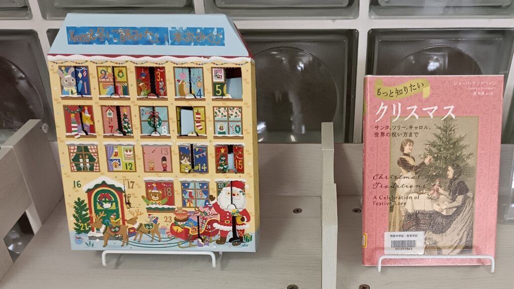ラウンジでは、生徒のみなさんに教えてもらった「Xmas&冬に読みたい本」をおみくじにして展示しています。アドベントカレンダーを開けてみてください(*^-^*)