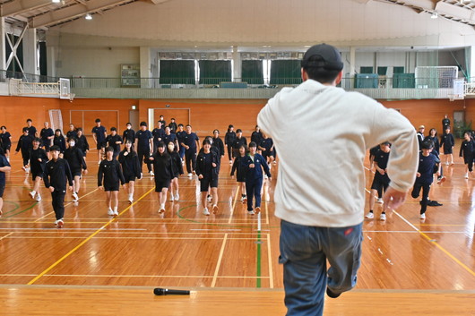 中学体育の授業では、山陰わくわくストリートダンス協会より講師の先生をお招きし、今日で3回目となるダンスの授業を実施しました。