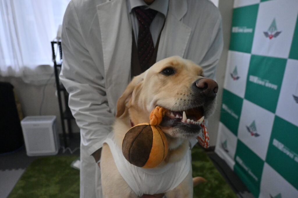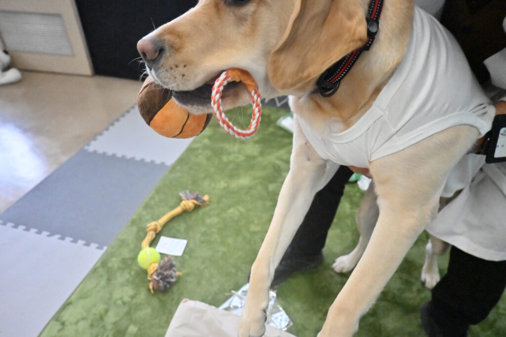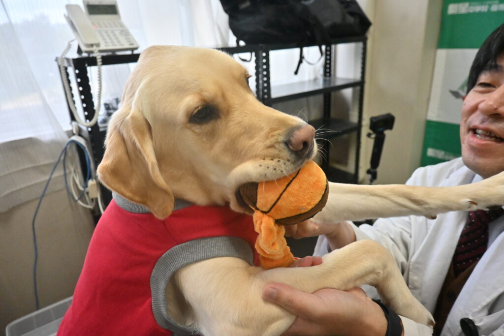 いただいたおもちゃを離さないレイ(小さい頃のお気に入りだそうです)