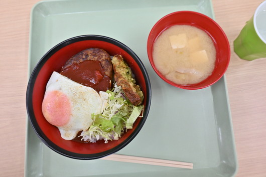 本日の食堂の日替わり丼はロコモコ丼でした。ボリュームもあり、学生たちにも好評でした。
