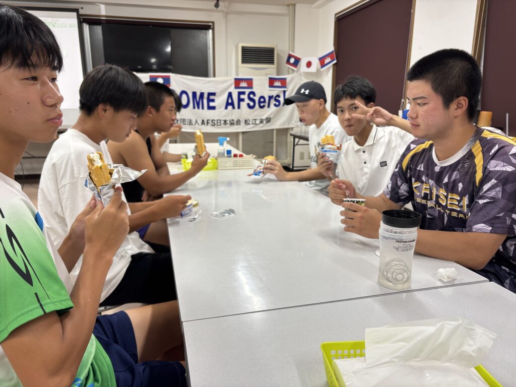その後は寮生全員で食事をともにし、楽しい時間を過ごしました。さらに、AFS様よりご提供いただいたアイスクリームを皆でいただき、とても美味しく大好評でした。