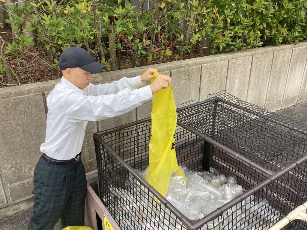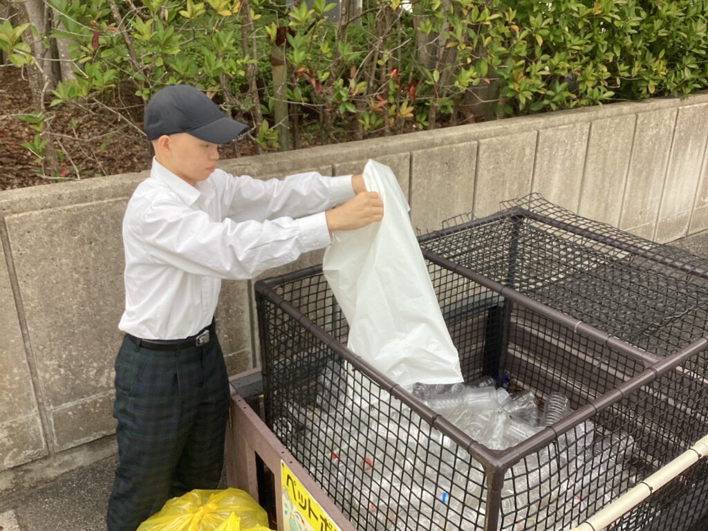 10月21日(火)、スサノオマジックの練習がオフだった知念さんが、寮で分別・保管していたペットボトルを近くの回収所まで運んでくれました。