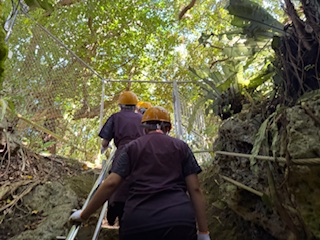 平和学習の第一弾は、糸数アブチラガマです。沖縄戦時、この自然の洞窟は糸数住民の避難指定場所や、日本軍の地下陣地・倉庫としても使用され、戦場が南下するにつれて南風原陸軍病院の分室となりました。昭和20年5月1日から軍医・看護婦・ひめゆり学徒が配属され、約600名の負傷兵が運び込まれて来ました。