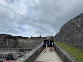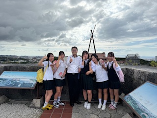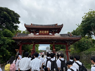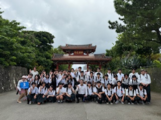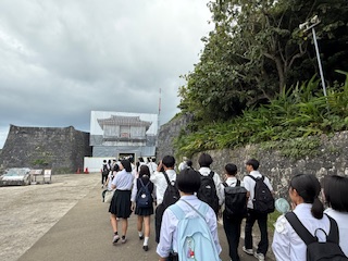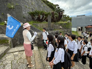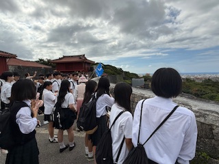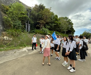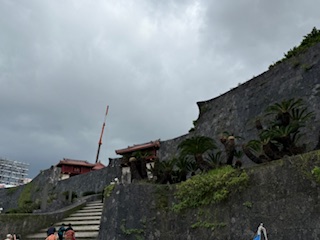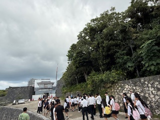 本日の訪問地首里城に到着しました。旅行団は皆元気です。