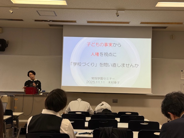 また、教育講演会では、大阪市立大空小学校の初代校長である木村泰子氏による「学校教育の目的は?」と題した講演を拝聴し、教育の本質や子ども一人ひとりの育ちを支える学校の役割について改めて考える貴重な機会となりました。