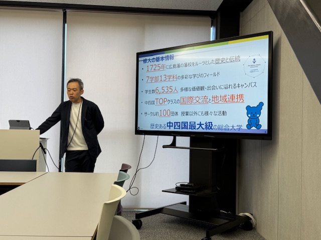 「SB Student Ambassador 中国ブロック大会」を翌日に控えた本日、参加生徒たちと広島市内の大学見学を行いました。午前中は女子グループと男子グループに分かれ、それぞれ異なる大学を訪問し、進路について考える貴重な時間となりました。