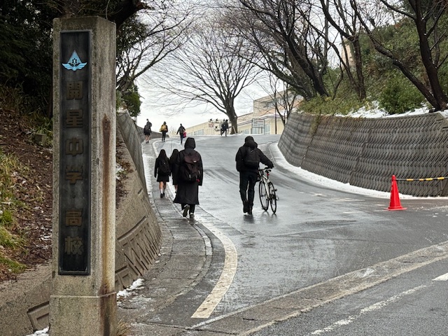 学園坂には少し雪が残っていますが、登下校に大きな支障はなく、ほっとしています。