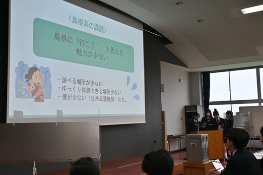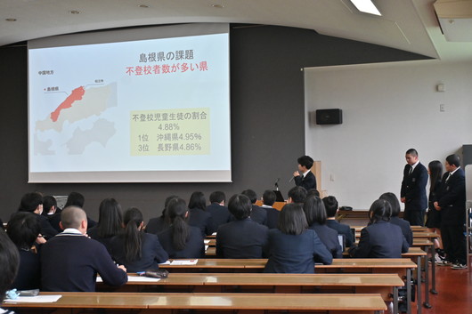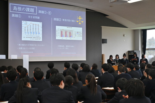 今回のテーマは「選挙」です。本プログラムは、選挙の仕組みや投票の意義を実践的に学び、政治参加への意識を高めるとともに、島根県の課題についてグループで話し合い、意見を深めて発表する活動を通して、ディスカッション力やプレゼンテーション力を育成することを目的としています。1月から地域の現状分析や資料作成など、準備を重ねてきました。