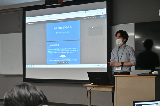 本日は職員研修の一環として、各教科から提出されたレポートを共有し、教職員全体でディスカッションを行いました。