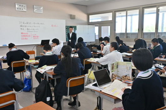 2年生国語の時間です。互いの意見を聞き合い、学び合う雰囲気がとても温かく感じられました。