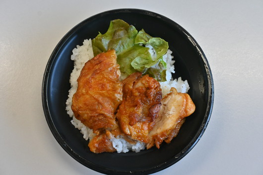 スパイスの香りが食欲をそそります。小盛のごはんに盛り付けられているので、軽めの量がいい人や、もう一品を楽しみたい人にもうれしい工夫です。日々、配慮してくださる食堂の皆さんに感謝の気持ちでいっぱいです。