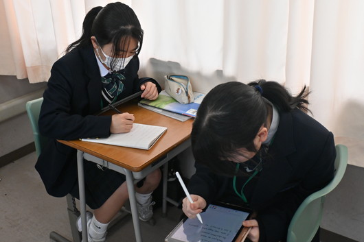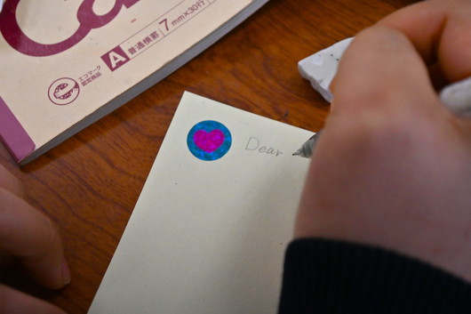 32Rでは「ありがとうレター」と題して、日頃から感謝している相手へ、英語で手紙を書く活動に取り組みました。家族や友達、あるいは先生。生徒たちはそれぞれ「誰に伝えようかな?」と思いを巡らせながら、真剣にペンを走らせていました。