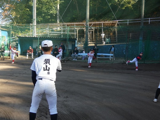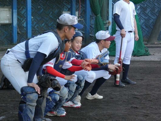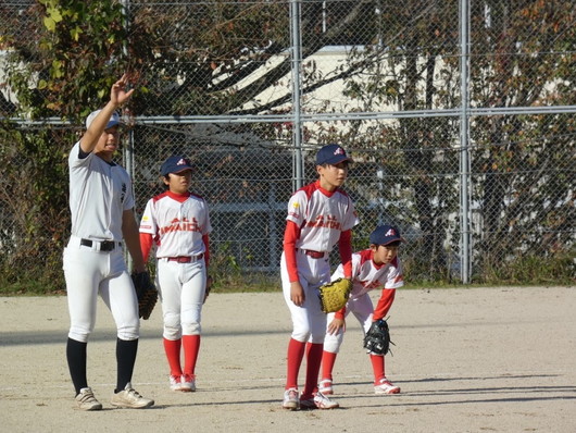 11/16(日)の午後、今シーズン初の小学生と合同練習を行いました。