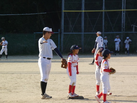 小学1年生~6年生まで約30名の皆さんとキャッチボールや守備練習、試合形式の練習を存分に楽しみました!