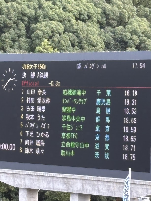 第56回U16陸上競技大会 女子150mで古田瑞樹さんが銅メダル獲得!