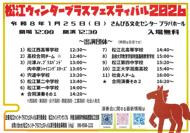1/25(日) さんびる文化センタープラバホールにて行われた、松江ウィンターブラスフェスティバル2026に出演しました。