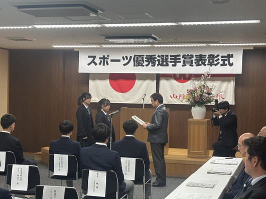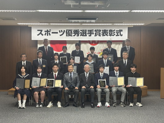 この賞は、2025年度の各種大会において特に優秀な成績を収めた団体・個人に贈られるもので、島根のスポーツ界の未来を担う若い力の功績が改めて高く評価されました。