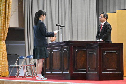 本日、同窓会の野津会長、教育後援会の仙田副会長のご臨席を賜り、同窓会・教育後援会への入会式を挙行いたしました。